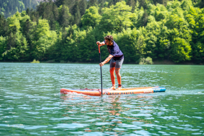 Прочные и эргономичные надувные доски обеспечивают высокую устойчивость даже новичкам, а максимальная нагрузка до 170 кг позволяет совмещать прогулки со спортивными тренировками. Универсальная модель отлично подходит для рек, озер и морского побережья.