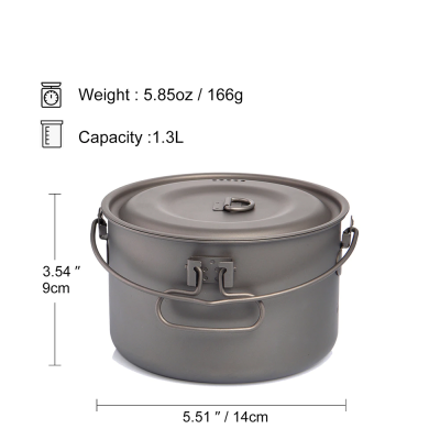Котелок (кастрюля) Widesea WSTC-109 из прочного титанового сплава. Хорошо подходит для приготовления пищи на открытом воздухе.
